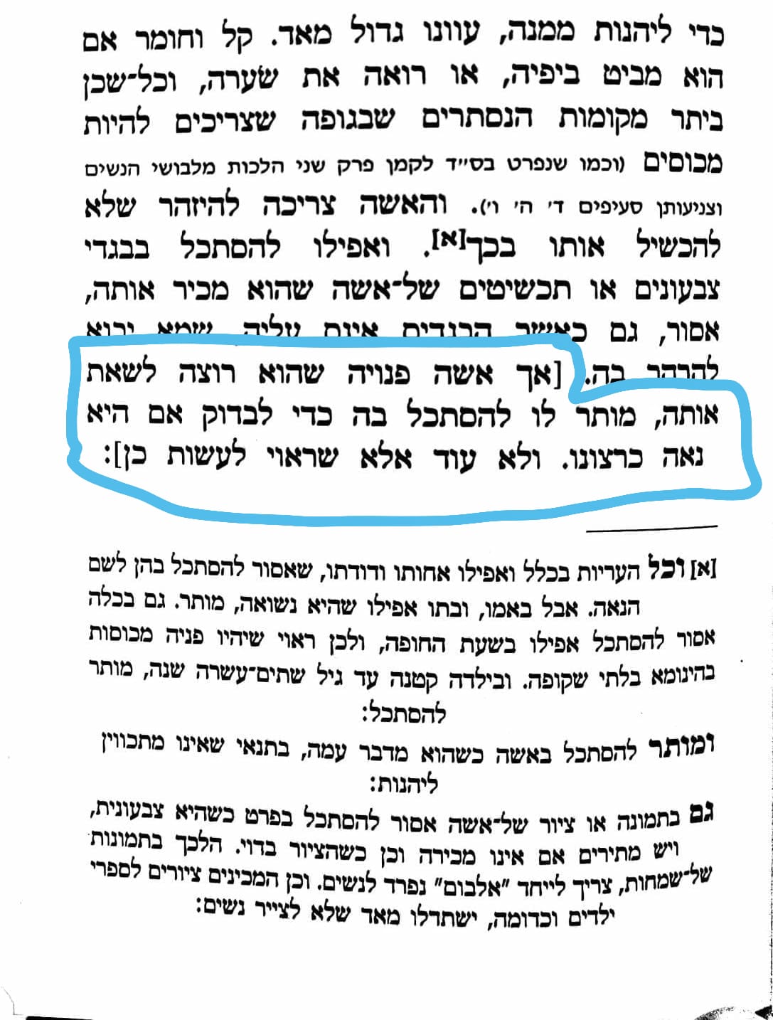 אבל לראות מותר. למרות זאת, אישה שאצלה מקומות שצריכים להיות מכוסים- גלויים, אסורה גם בראיה בעלמא.