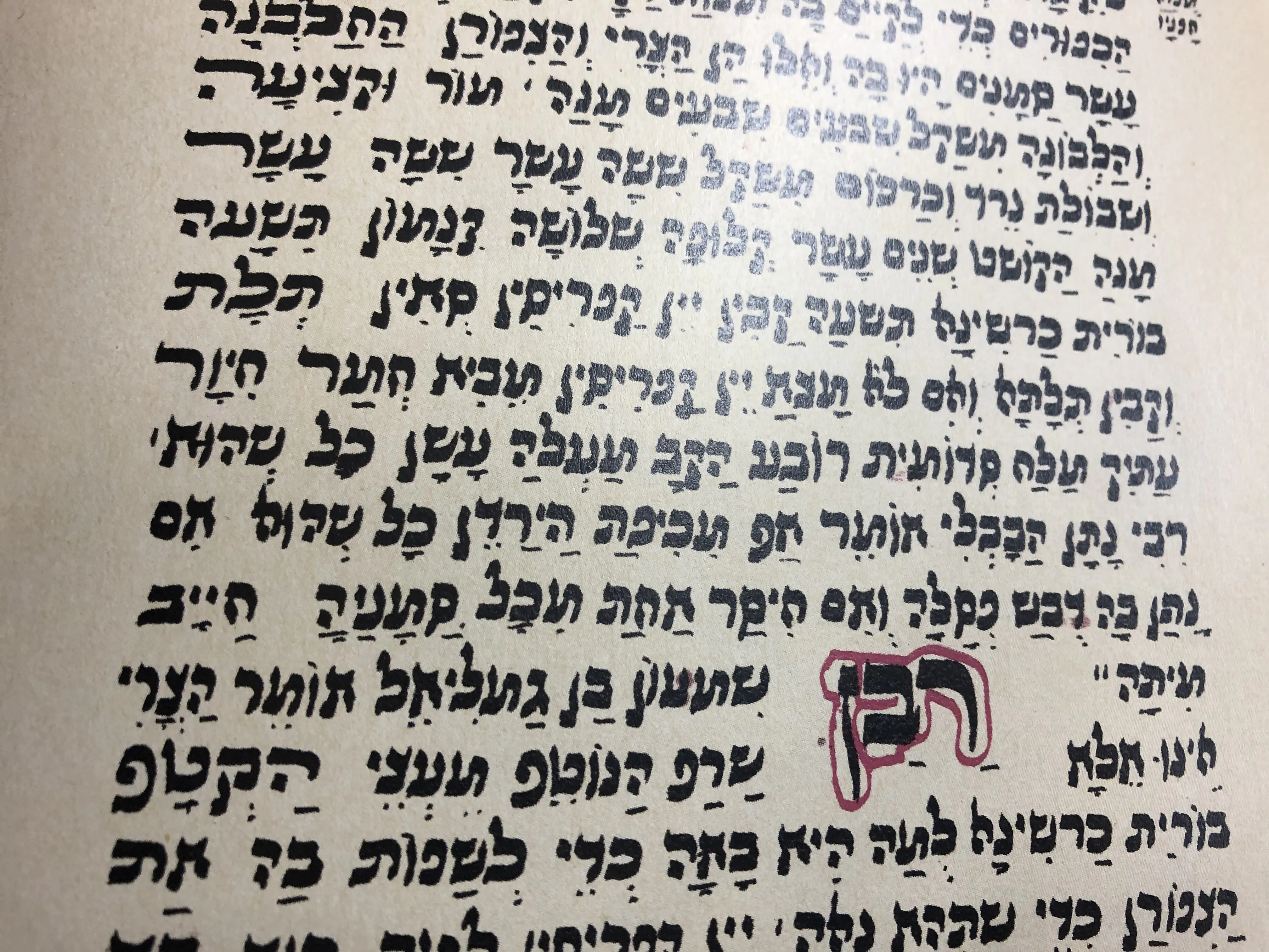 הכתב של עדות המזרח היה שונה בין סופר לסופר. יתכן שפה הוא רק משך את הרגל התחתונה של הף לצד כדי לא להרוס את השורות הצפופות.
