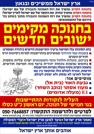 בחנוכה הקרוב נוסיף ונעלה נקודות התיישבות חדשות,
