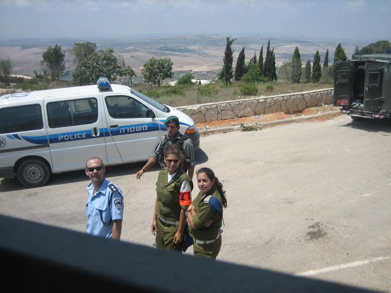 באיזה שהוא שלה גם המם פיי שלהם הגיע כל כמה זמן לשאול אותי אם אני צריכה משהו. בסביבות אחת, הגיעו שתי בנות שחזרו והתיישבו לידי. מייד הגיעו איזה 5 שוטרים <ביניהם מפכ"ל אחד..> ואמרו לנו שזהו, אנחנו צריכות לרדת. לא הסכמנו והם אמרו שנשאר לנו חמש דקות עד שיעיפו אותנו בכוח. שתי הבנות ברחו משם וכשאני באתי להצטרף שוטרת אחת התקרבה אלי תפסה אותי ואמרה שאני נשארתי. בכול מקרה לא יכלתי להמשיך בגלל הנקע ברגל. ואז אחרי 5 דקות הוא אמר שאם אני לא עולה על הנייד הוא קורא למגבניקים. טוב אז אני כזה נשארת ואומרת תעשו מה שתעשו, אני לא מעצמי יצא מכן. תוך כמה זמן הגיעו מגבניקים, בערך 10 הקיפו אותי וזרקו אותי לניידת. אותו מפכ"ל אמר להם שיוציאו את הפרטים של אבא שלי בשביל שיתבעו אותו על כל העלייה הזו. אוקי אז אני בניידת, מאוד מיובשת. באישה שהוא שלב- הם הורידו אותי בצומת של המשטרה, עם שני מגבניקים לחכות עד שתגיע ניידת לקחת אותי למשטרת אריאל. חיכנו איזה 40 דקות, <הייתי מזה מיובשת, וכל הזמן עמדתי על רגל אחת> ואז הגיעה ניידת <כולם בה ביו חובשי כיפה> והם ראו את המצב שלי ולקחו אותי מייד לחובשים. אחרי הכול- הם החליטו לרחם עלי ולא לקחו אותי למשטרת אריאל. הורידו אותי בקדומים והגעתי הביתה על רגל אחת.