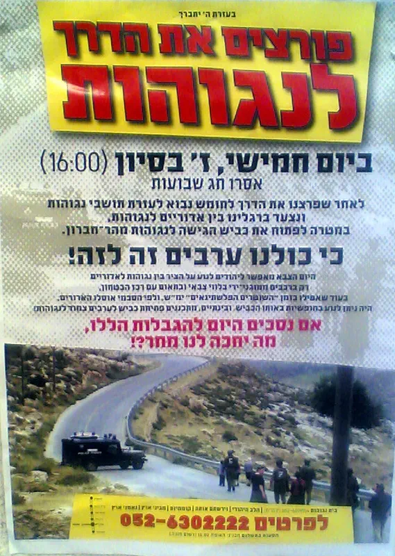 בעז"ה, היום (יום חמישי, ז' סיוון), תהי'ה צעדה מאדורי'ים לנגוהות. (בשעה 16:00)
