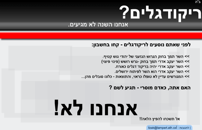 מישהו יודע באיזה שעה הריקודגלים,ומאיפה יוצאים?פשוט חברה שלי חייבת ת'פרטים כמה שיותר מהרר...תזכו למצוות צדיקים!!!יומטוב ותודה רבה רבה..[=