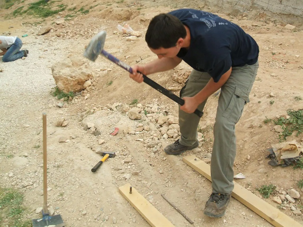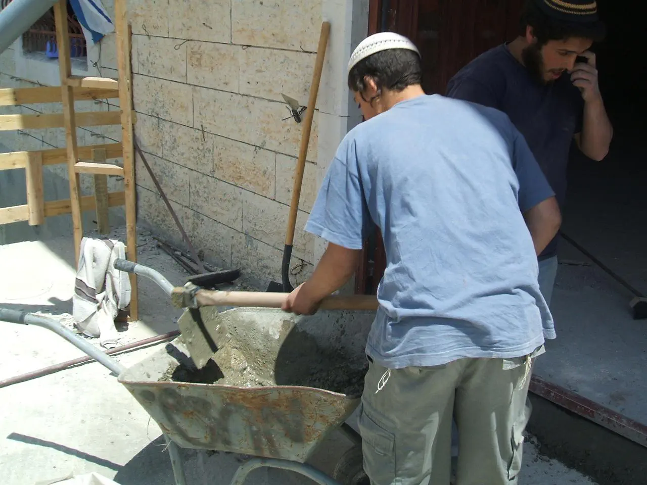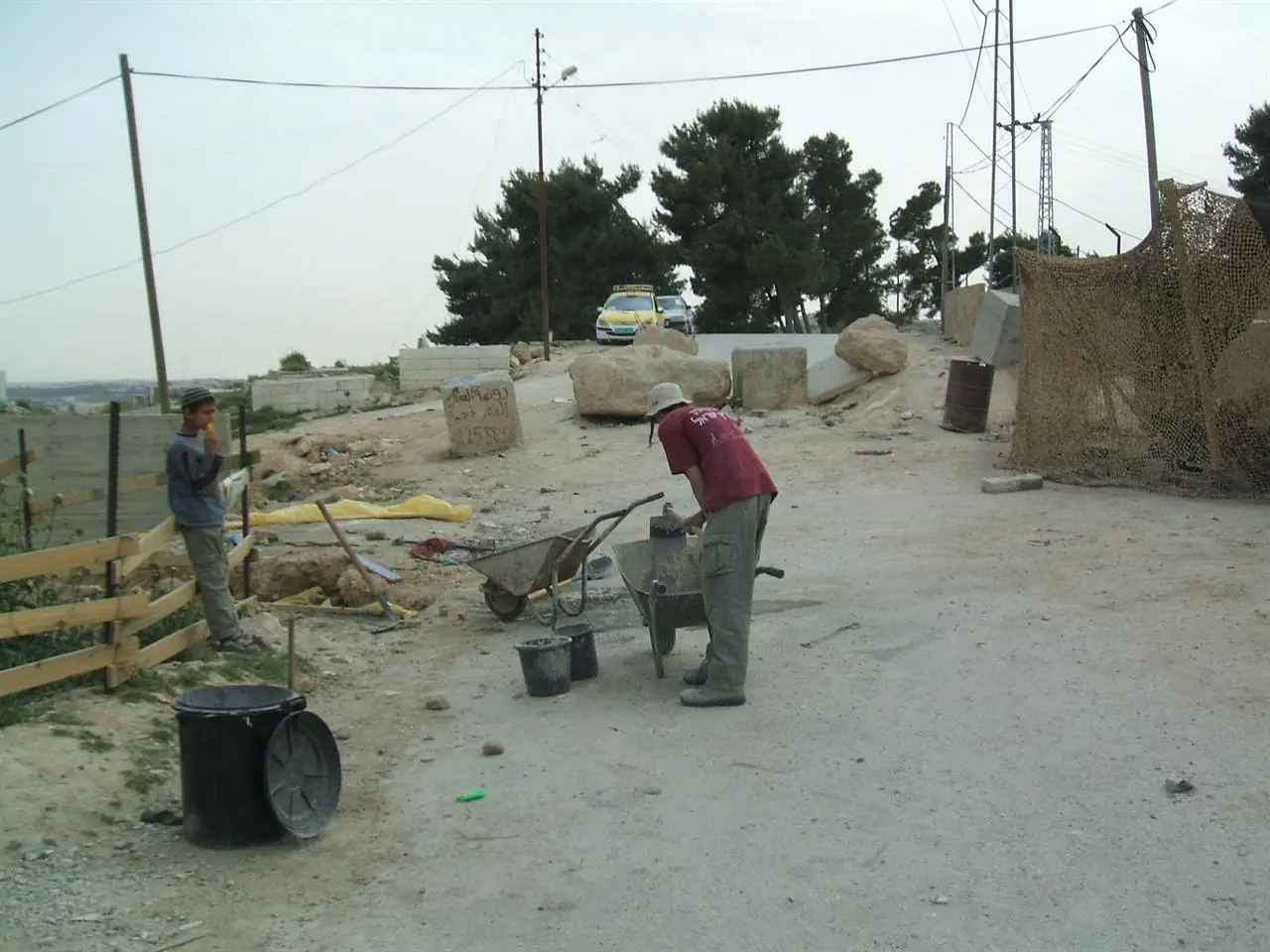 20070504080548.jpg העובדים ליד המערה באחד הלילה ירדנו ברגל וניגנו בדרך עשינו שמח לערביי חברון