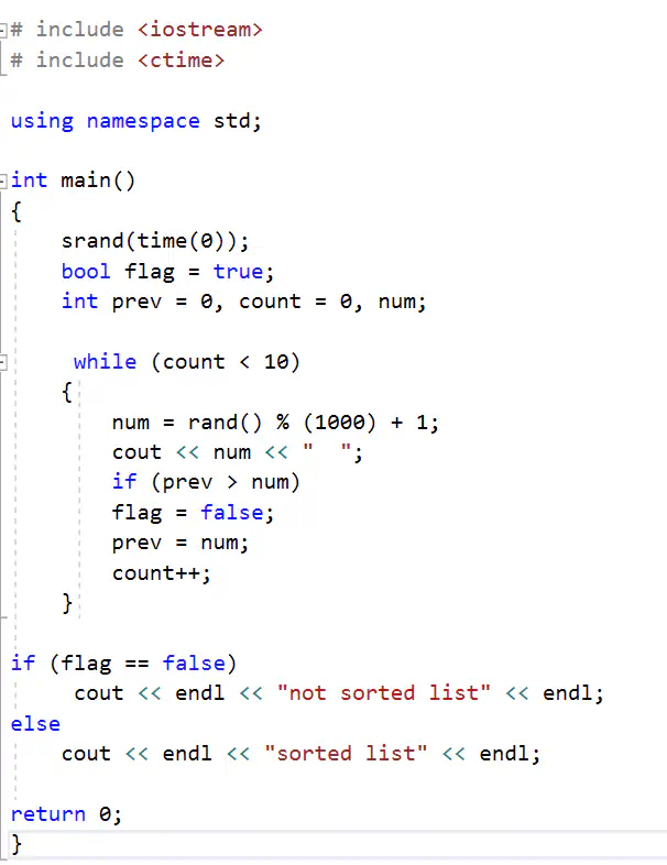 לאחר מכן, על התכנית לבצע בדיקה האם המספרים ממויינים(מסודרים) בסדר לא יורד או לא,