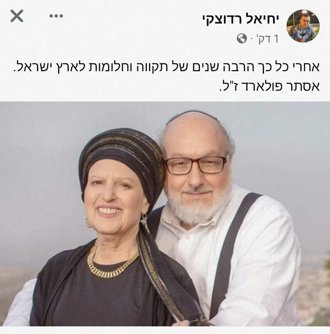 הציבור נקרא להתפלל לרפואת אסתר פולארד: המצב קשה