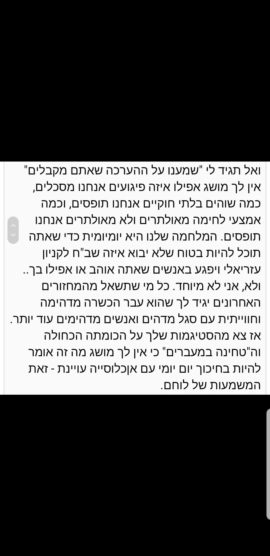 (שלישי בבוקר אני אלך להגיד לו שלום אולי ואז. אני בכלל לא מבין מה מצאת בי ואני, איך אפשר לא להבין. קשה לי עם החברה שמחדירה באנשים לפעמים שהם לא מספיק טובים. רואים צלקות עד היום)