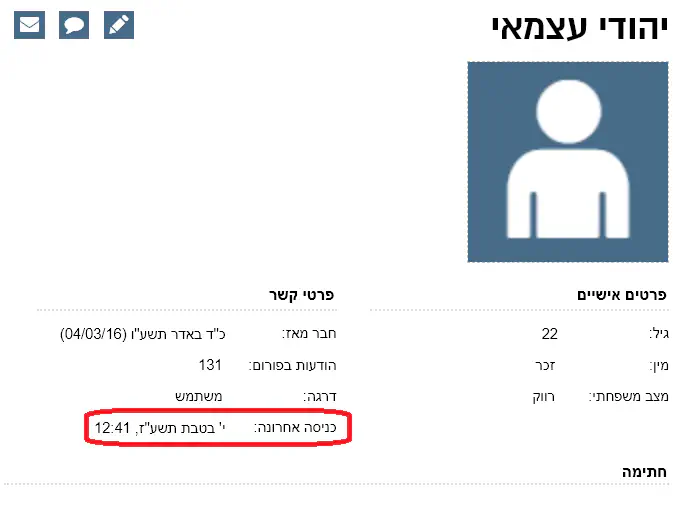 הטבלה בשרת אומרת שהוא התחבר ב-12:41 לאתר. בשעה 13:15 הוא כבר לא היה איתנו.