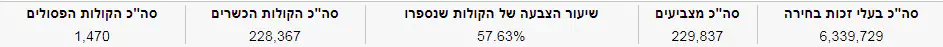 שיעור ההצבעה הוא מכלל בעלי זכות הבחירה, לא אלו שנספרו.בן-ציון