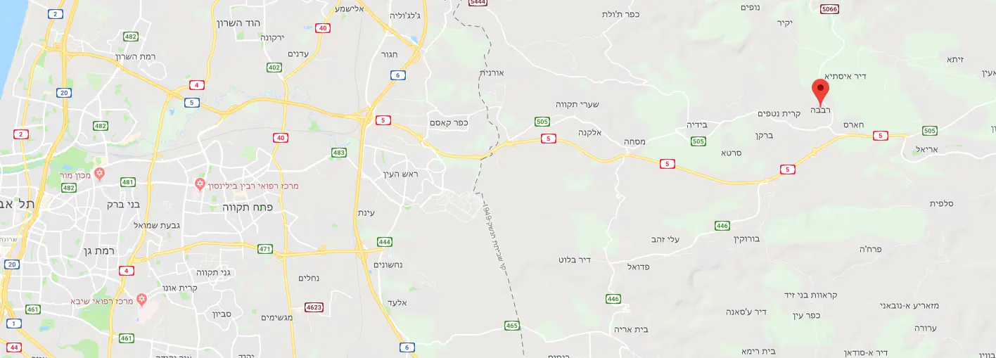 סמוך לכביש 5, מערבית לאריאל.בין החוץ לפנים