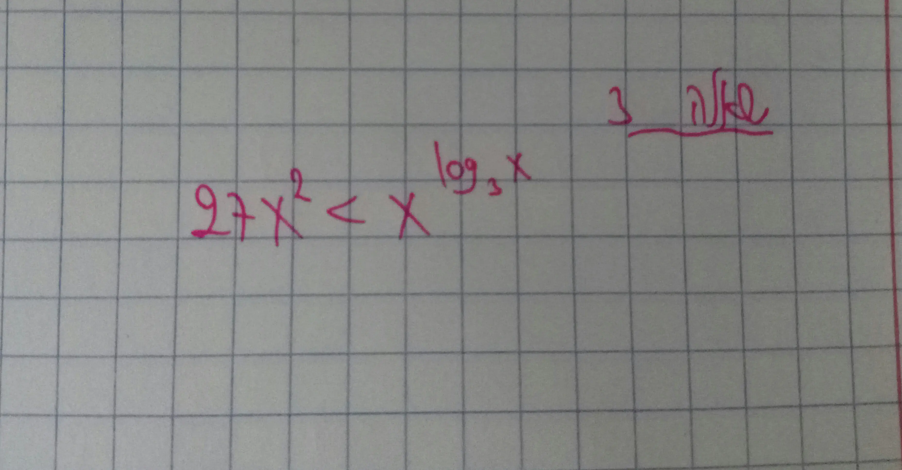 27 זה xבחזקת לוג בסיסx של 3בחזקת 3