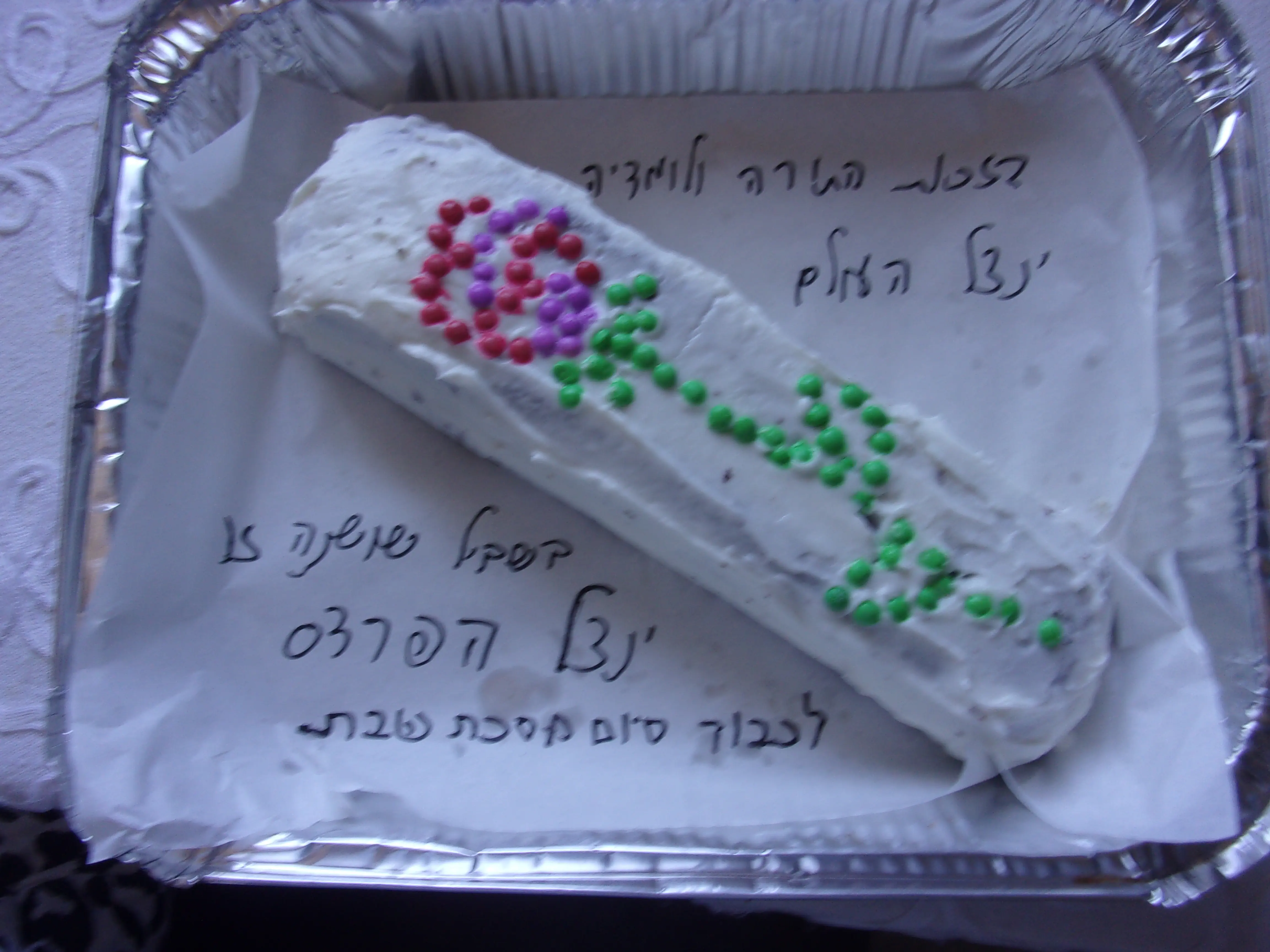 כמו כן יש במקפיא עוגה לסיום מסכת שבת שלא נאכלה כבר יומיים בעקבות ארוחוצ בשריות נו נו