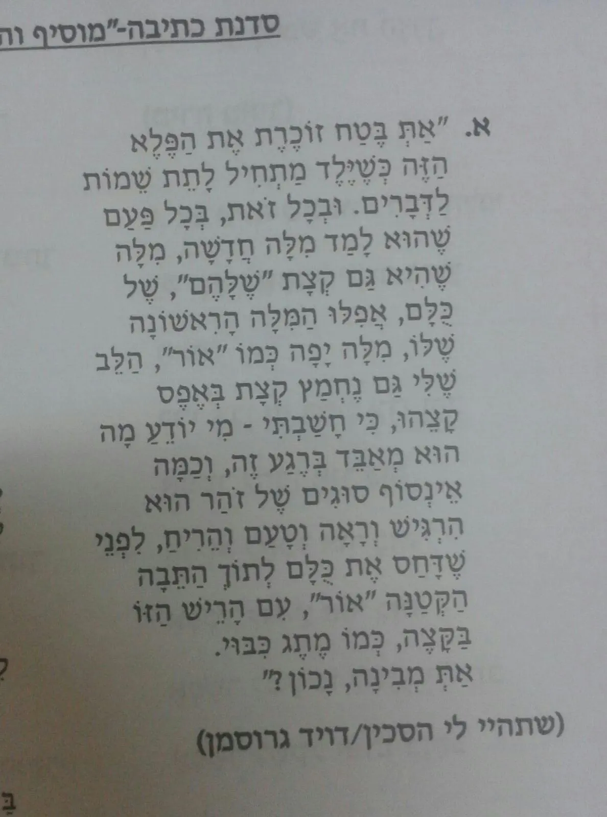כי משמע- שאני הכי אוהב לכתוב ולקרוא מכל היצירות. וחבל מאוד (מאוד!) שלא זכיתי ואם היה לי מספיק שכל בשעה שהייתי עייף עוד הייתי מבקש רק את התרגילים אבל עכשיו זה בלי חבר'ה אז זה לא כיף.