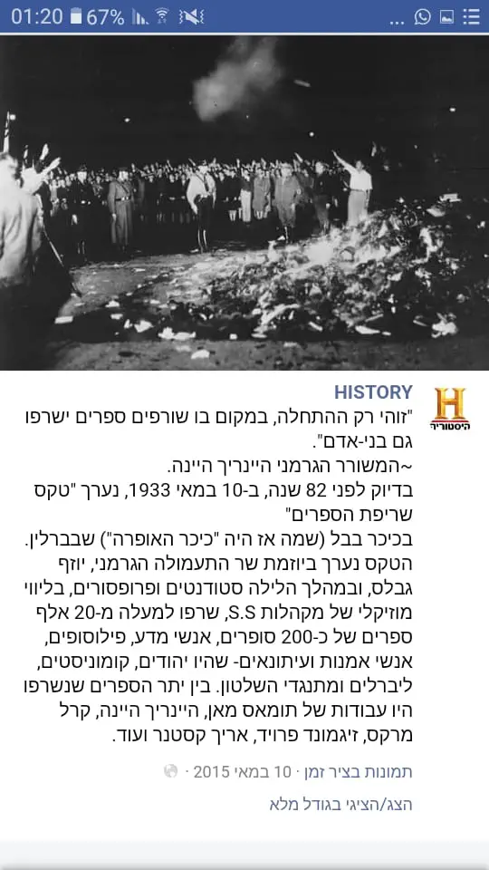 אבל לקחו אותו גם לעניין השריפה ההיא שבה סטודנטים גרמנים שרפו את כל הספרים שלא תאמו לעולם