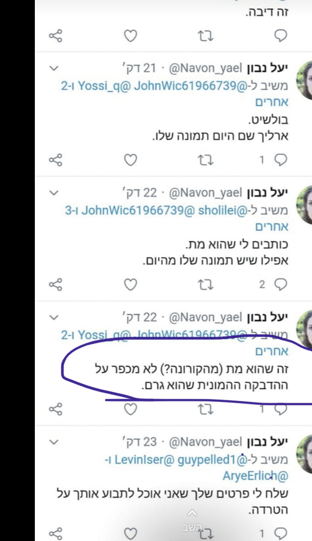 אח"כ היא אמרה שאם הוא היה שם מסיכה הוא לא היה נפטר 🤦🏼♀️רוח סערה