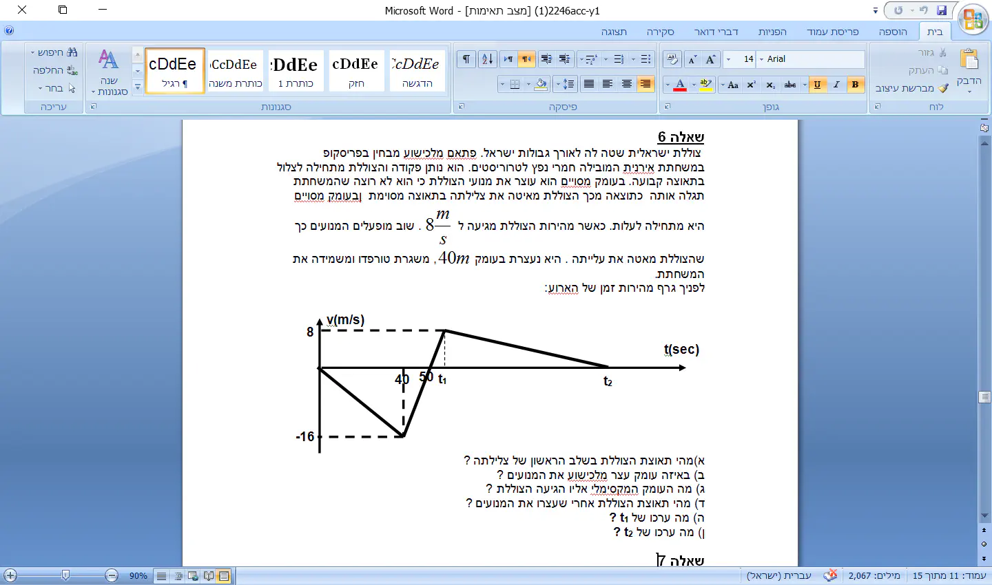 ב. עפ"י הנתונים שצויינו בסעיף הקודם, dy=(-16*40)/2=-360m.