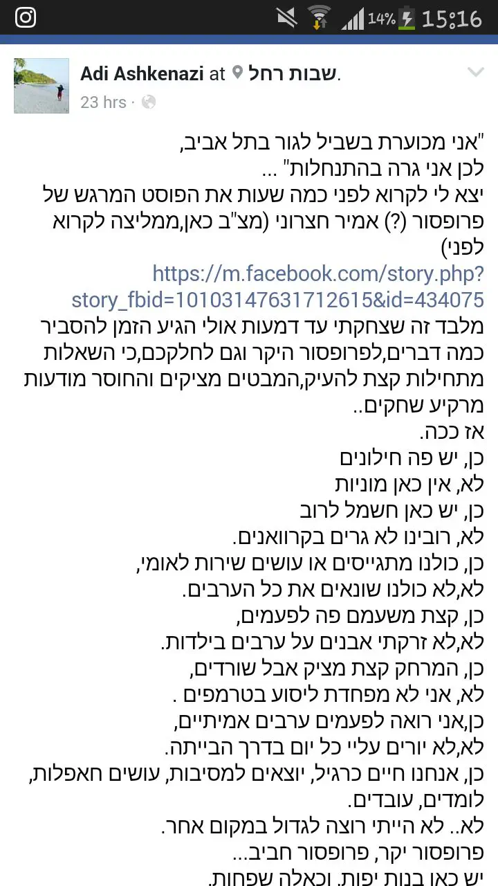 ישלי זכות להגיד שהמקום שאנחנו גרים בו אכן מדהים, כי גרתי לפני בתל אביב. אז אני מכירה את שני הצדדים.