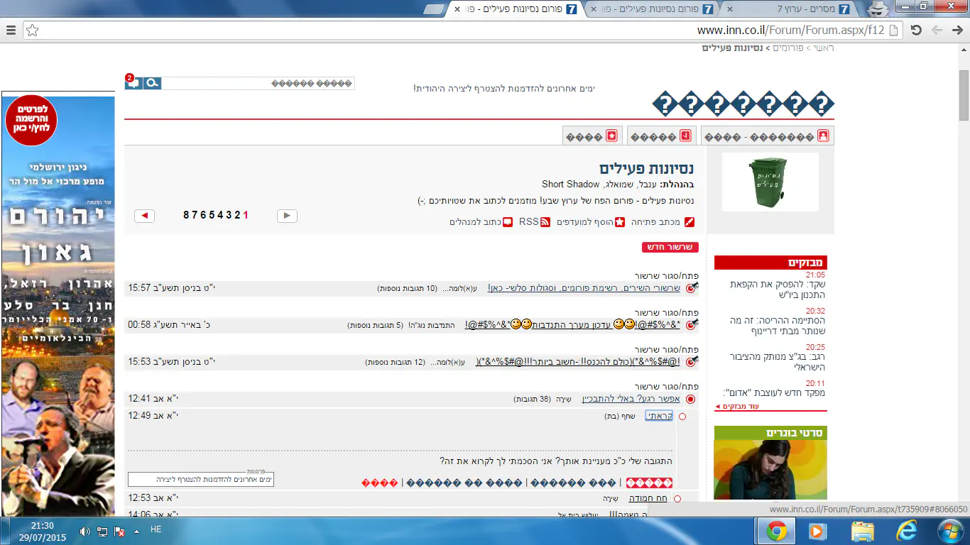 במקום תגובה, יש ?????? במקום נסיונות פעילים יש ????? הנה: