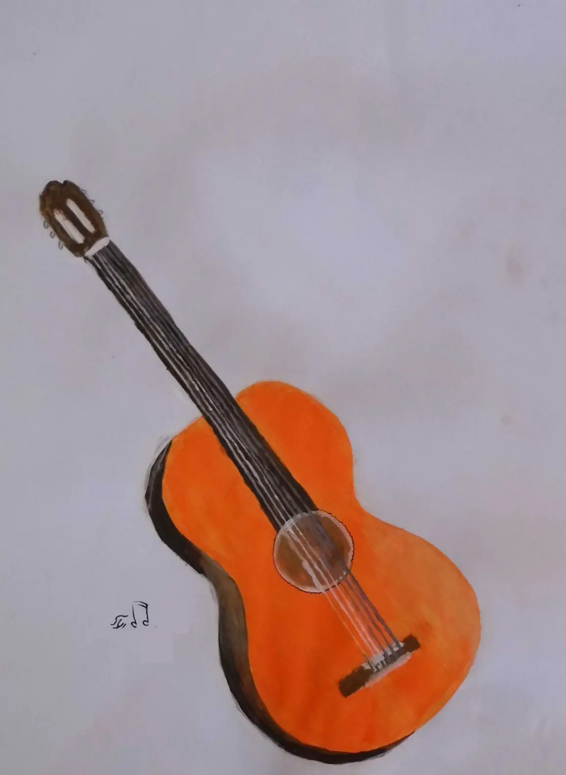 החלק החום של הגיטרה, הוא לא צל. הוא צריך להיות חלק מהגיטרה. אז בעצם טיפה תמשיכי אותו בקו ישר טיפונת לאורך הגיטרה. סבב? כאילו בנקודת חיבור של הגיטרה לאקורדים. טיפה תעגלי