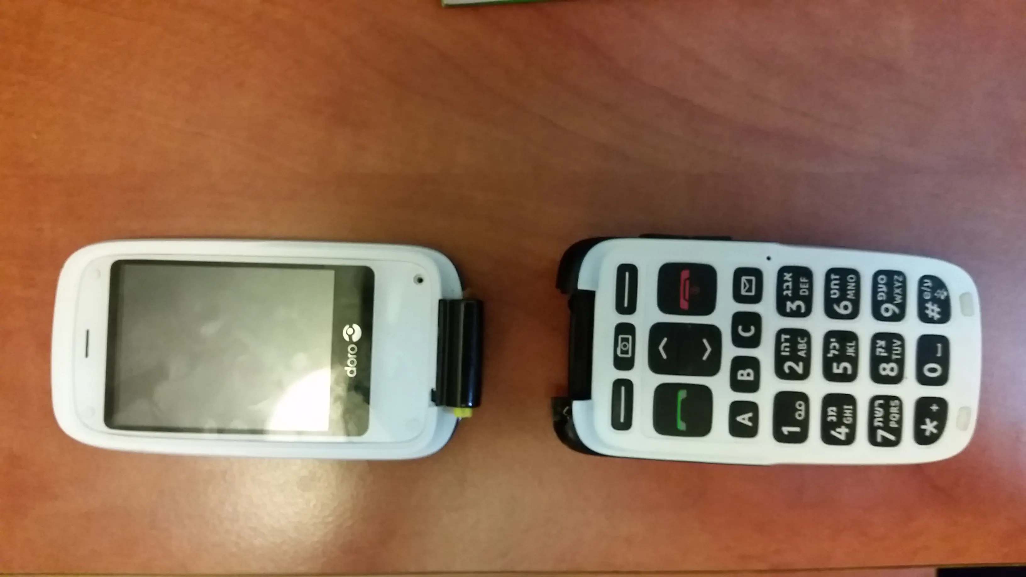 [ פון שהוא 2 חלקים ביד אחת מסך וביד השנייה מקשים ]