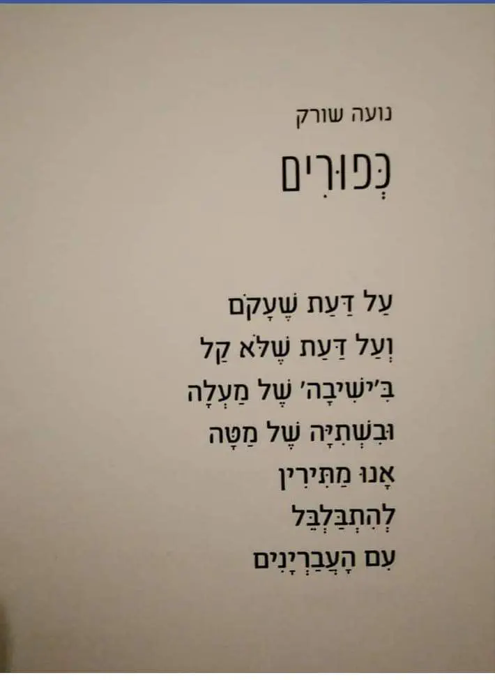 הֵבַנְתִּי שְׁתֵּי שׁוּרוֹת: הָרִאשׁוֹנָה —
