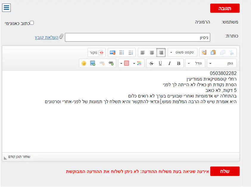 ממש תודהלב סדוקיואו אני לא מצליחה לשלוח תהודעה!