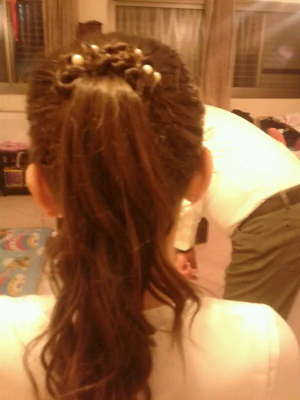 את מכניסה את השיער ומלפפת מסביב לספוג, ואחר כך שמה מטפחת דקה כדי כאילו לסתום את החור שנשאר בין הקוקס לראש עצמו, ואז את המטפחת עצמה..
