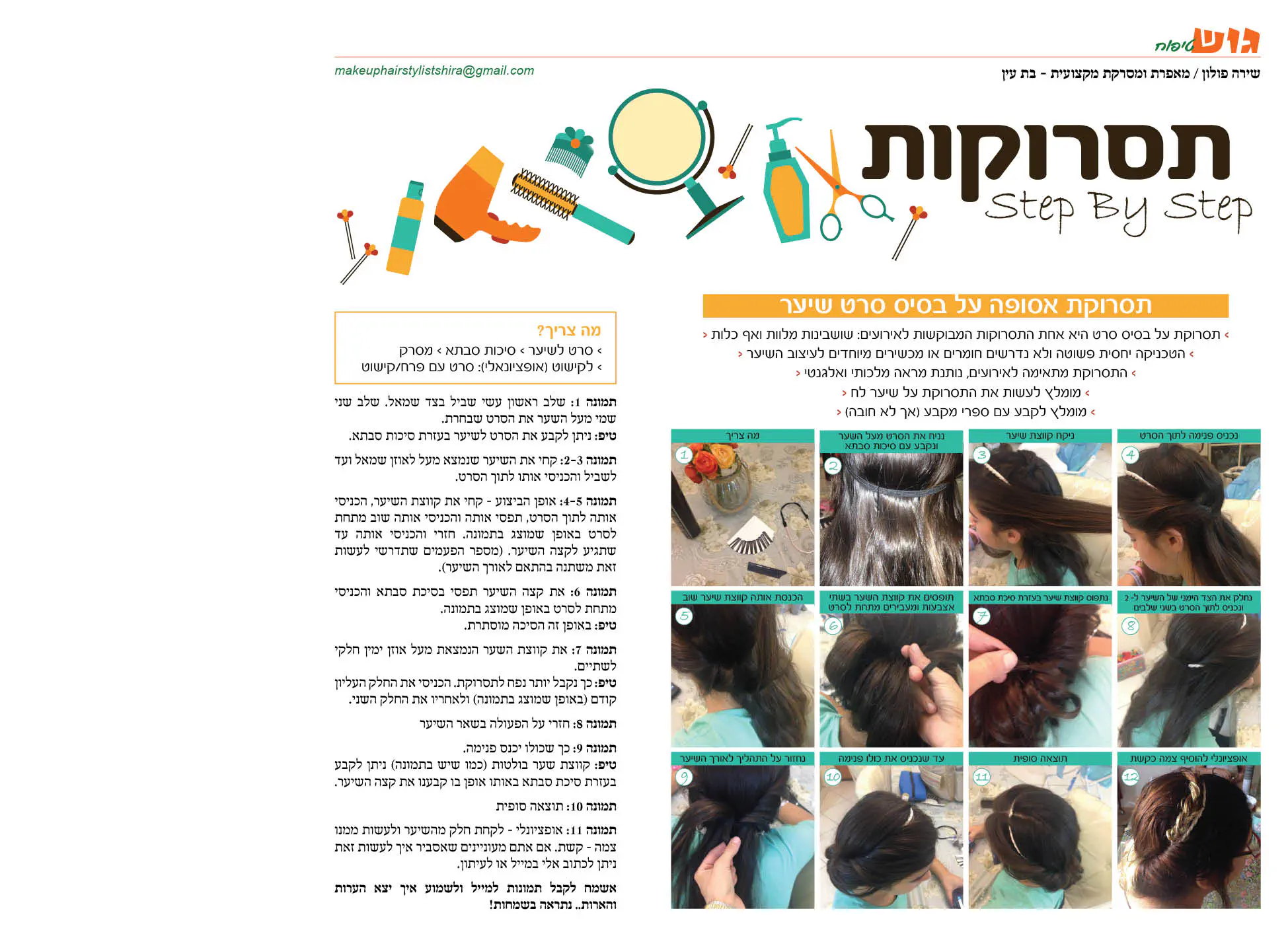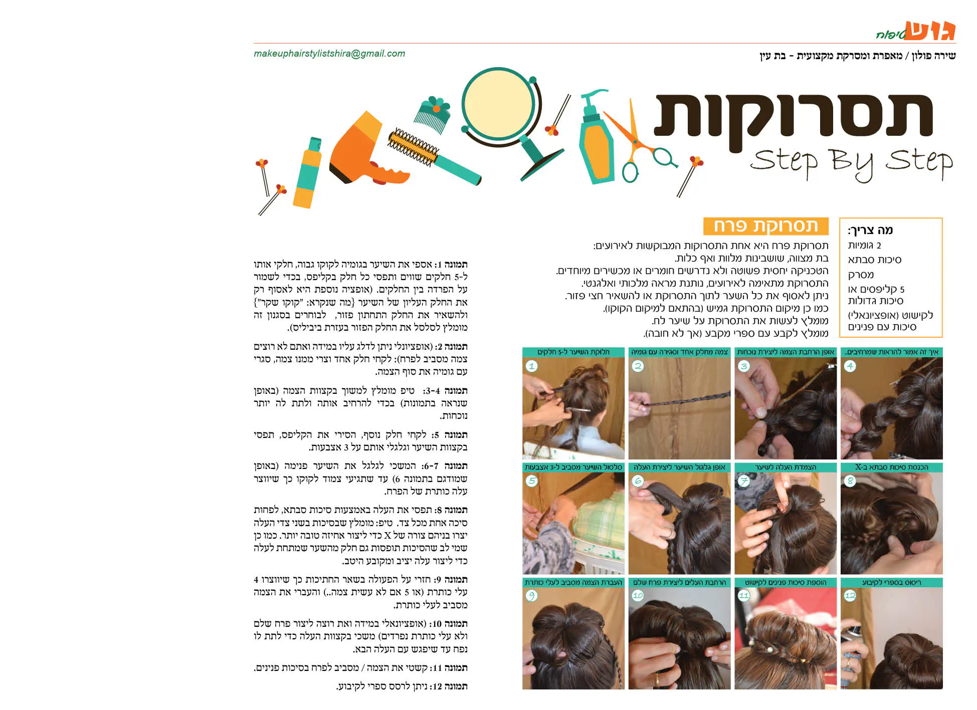 מצורף מאמר שהתפרסם בעיתון בו הסברתי איך לעשות בעצמכם תסרוקות שלב אחיר שלב