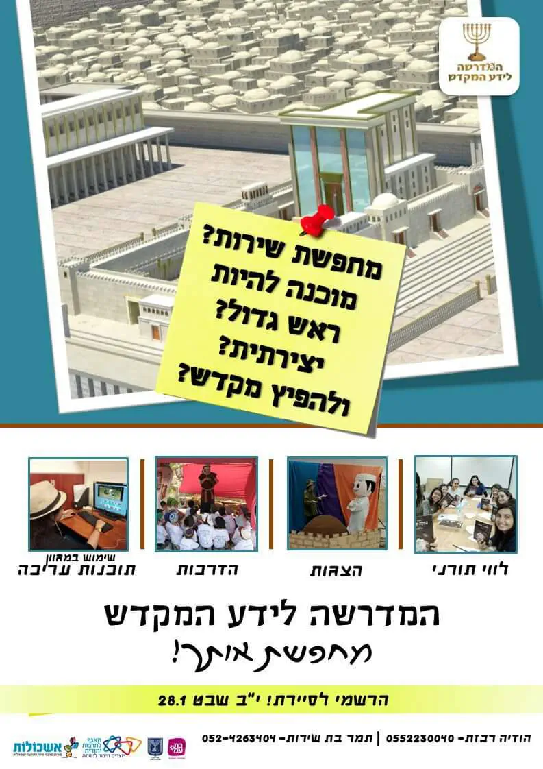 מכון המקדש מחפש בנות שירות לאומי לשנת תשע"ח-ט.