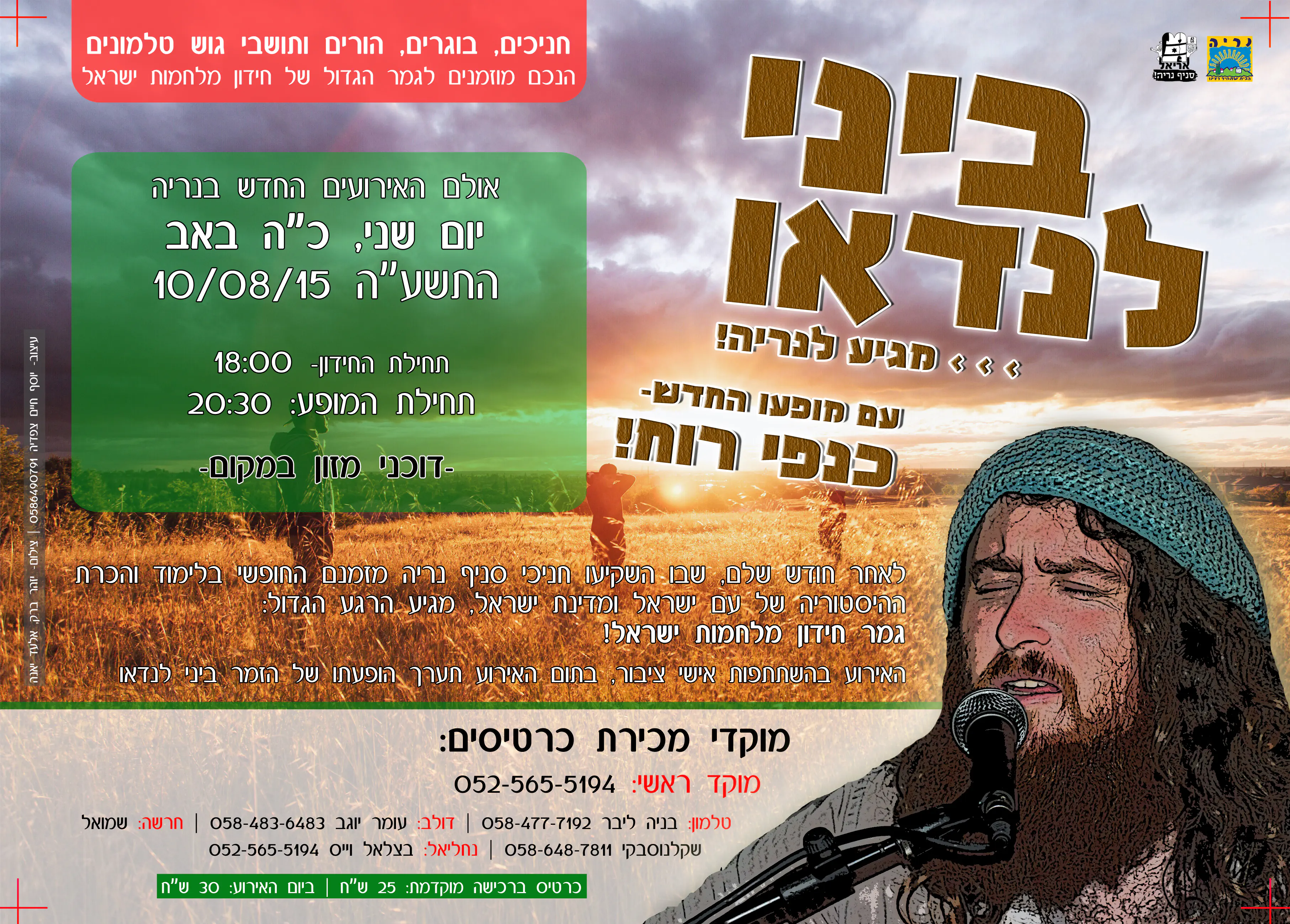 אנו שמחים להזמין את כולם לשלב הגמר אשר יתקיים שבוע הבא ביום שני כ"ה אב באולם האירועים החדש ביישוב נריה.
