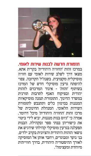 מיזם חדשני של הרכב מוסיקלי מיוחד במינו יוצא לדרך, בו משתתפות בנות שירות לאומי מנגנות, שתעסוקנה בהדרכת ילדים, בני נוער ומבוגרים בנושאי זהות יהודית וציונית, בשילוב מופעי נגינה ושירה ב"החוויה היהודית". (אתר: www.h-y1.coi.co.il)
