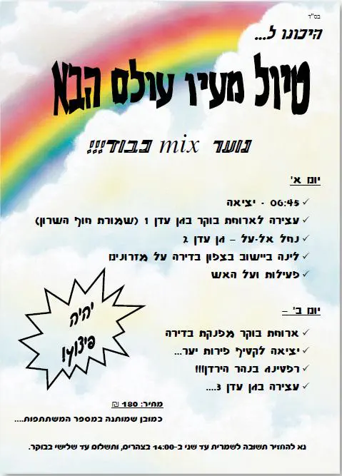 הסעות: מקרית ארבע בשעה 8.45 מעי' המועצה,9:00 מצומת הגוש, 9:05 מאפרת, 9:15 מהר חומה