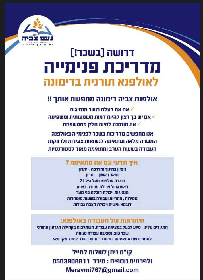 ב"ה קיבלנו 2 תקנים נוספים בנוסף ל- 2 התקנים שכבר היו לנו ואנחנו רוצים להרחיב ולהגדיל את הפעילות המדהימה שכבר נעשית בעיר..