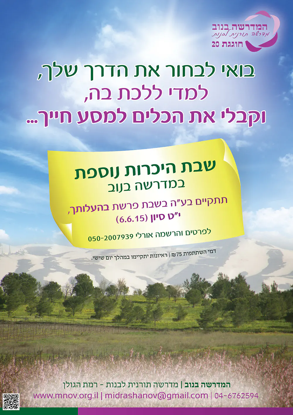 בואי להכיר את המדרשה בנוב בשבת הכרות בשבת פרשת בהעלותך.
