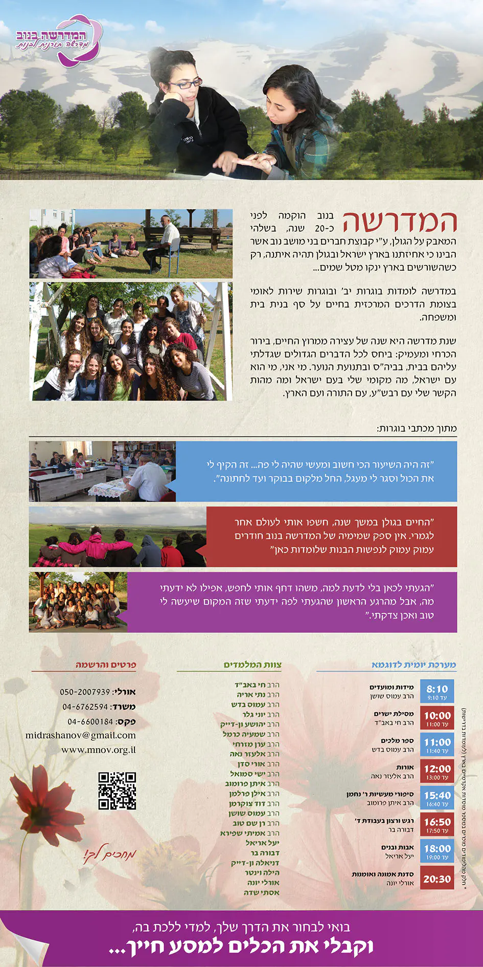 ממליצה בחום לכל אחת לבוא לבדוק במדרשת נוב ברמת הגולן.