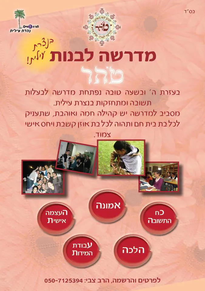חפשו אותנו בפייסבוק, מדרשת טהר לבעלות תשובה