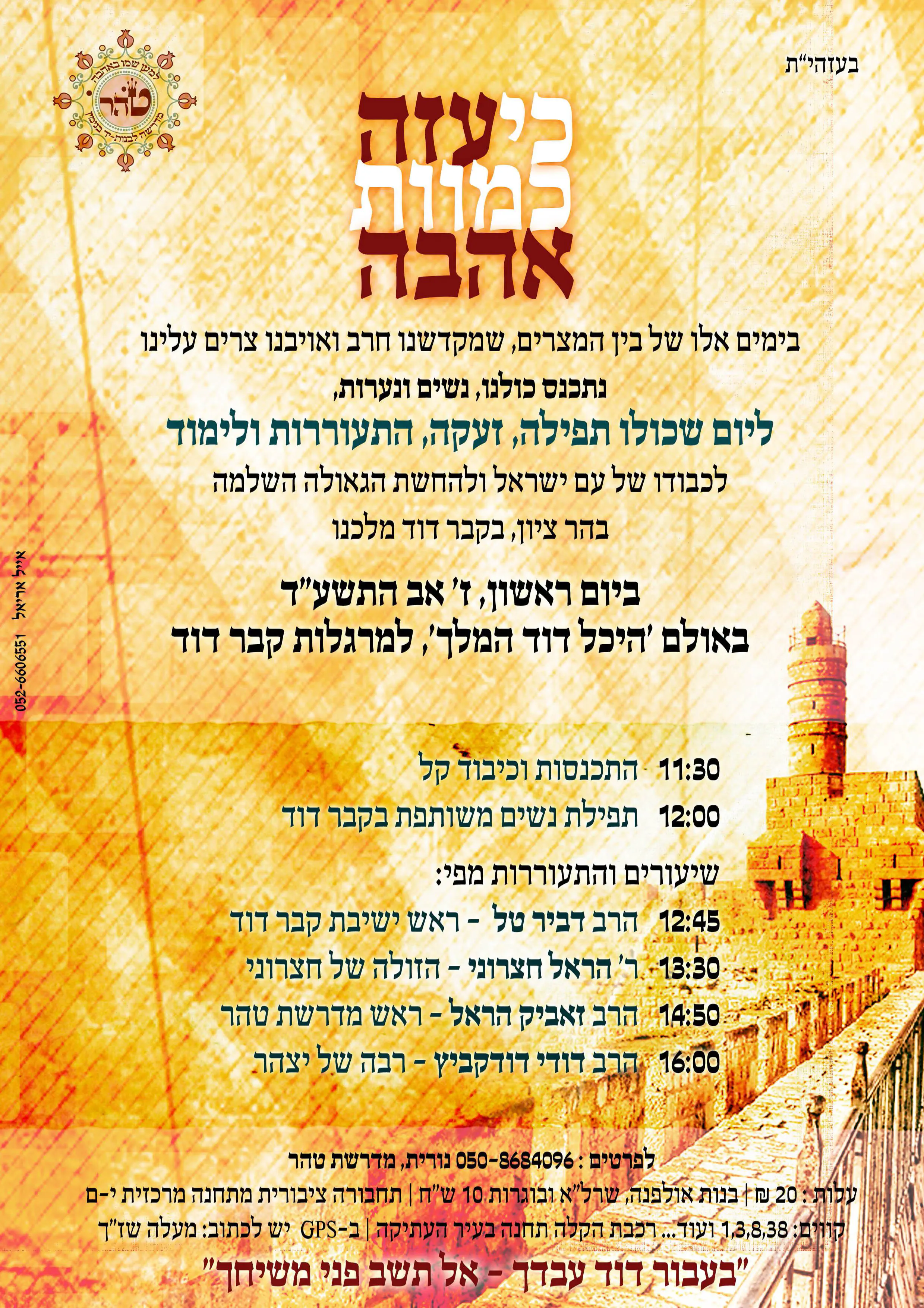 וגם יום עיון לאורו של הרב אליהו זצ"ל- יום שני, כ"ה סיוון, עם נכד הרב- אלעד בן אליהו, הראל חצרוני ועוד...
