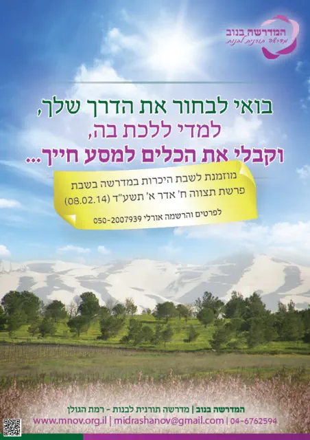 ג. שירות לאומי - נסי לחפש במקביל תחומים נוספים של שירות לאומי מלבד חינוך/קשישים/מזכירה (כדבריך). קיימים כאילו. השאלה מה מושך אותך. אם תמצאי תקן שאת אוהבת ששעות הפעילות בו הן מ8 עד 16:00, ואחה"צ תלמדי במדרשה בין 5-9 , האם את מרגישה שזה מתאים לך?