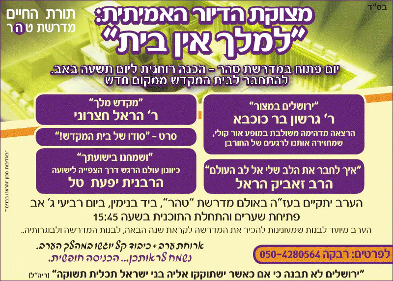 יום פתוח ביום רביעי כ"ה תמוז משעה 16:00.