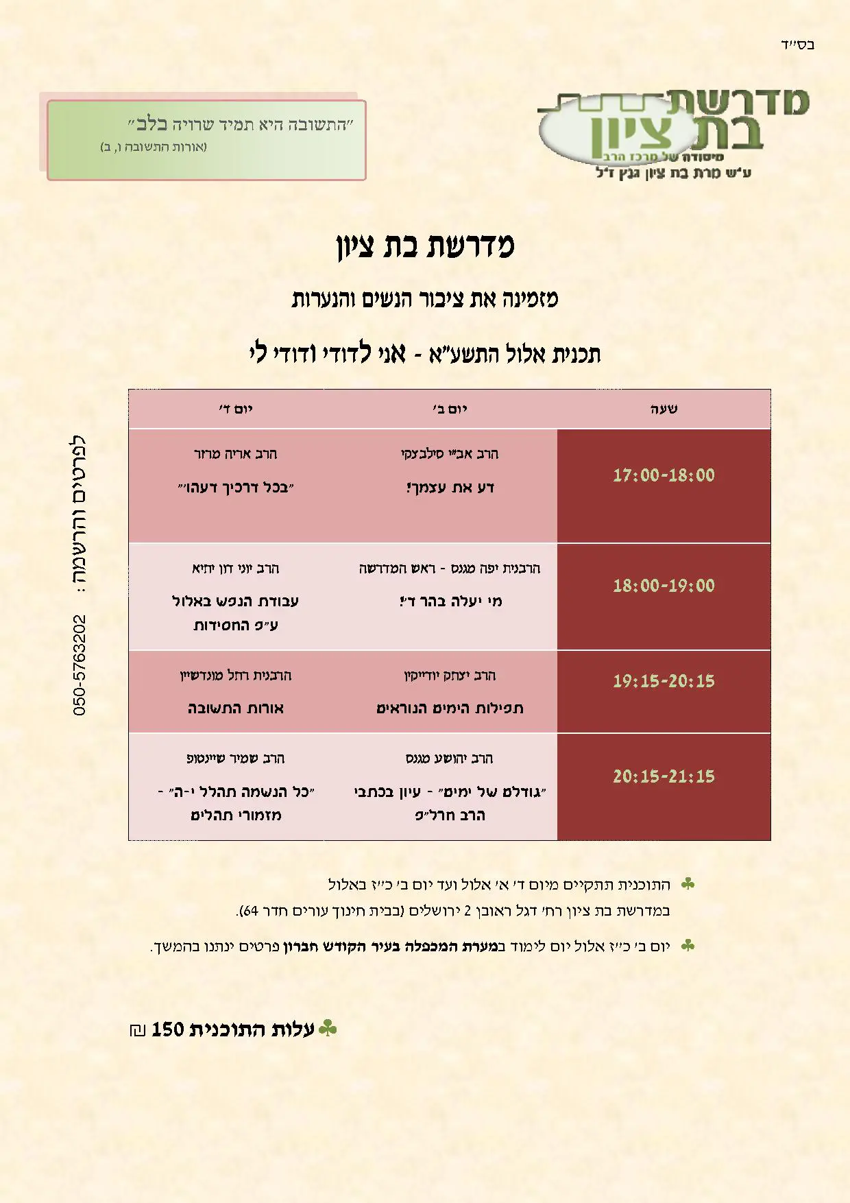 לפרטים והרשמה: 054-66511986 סיון אמונה.