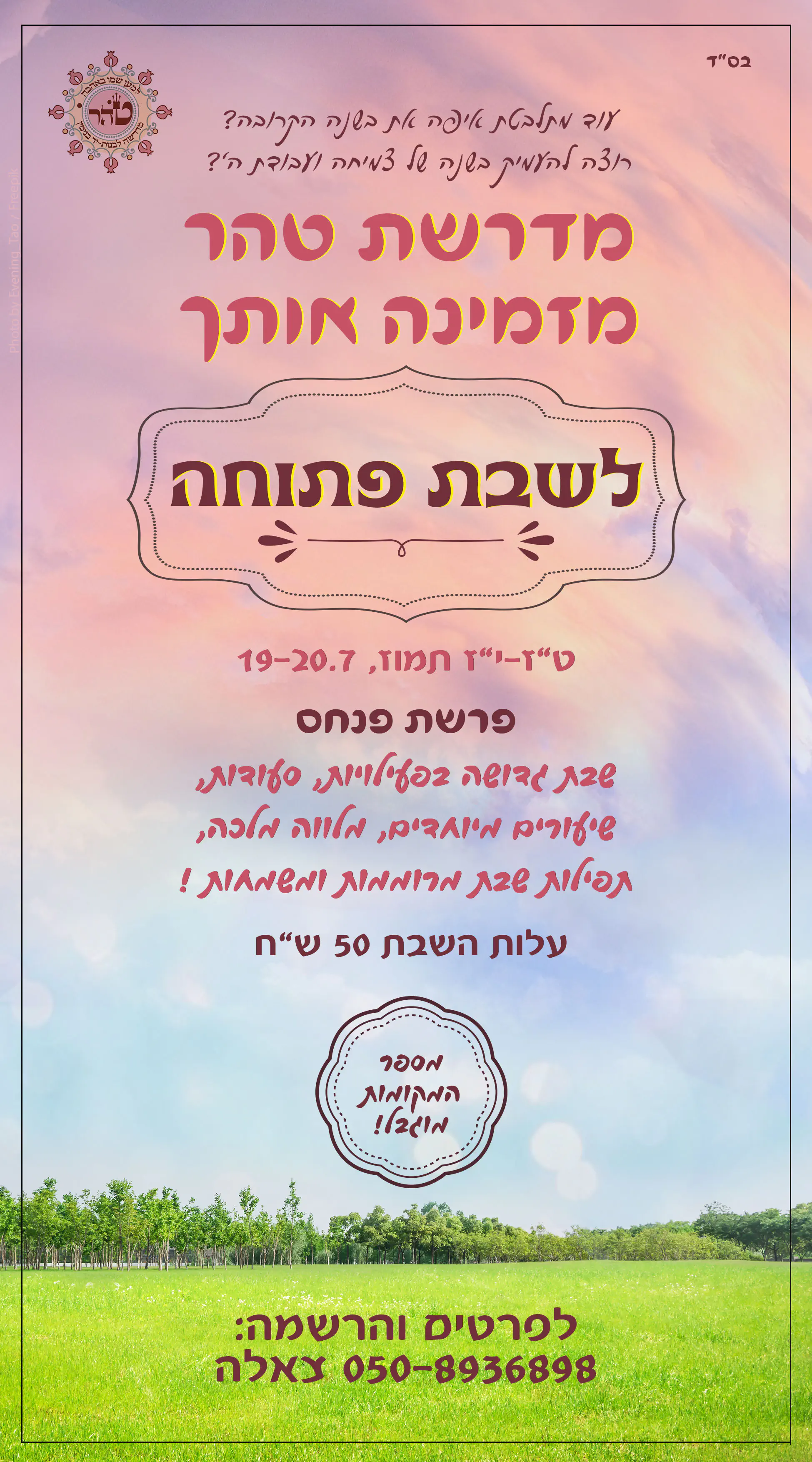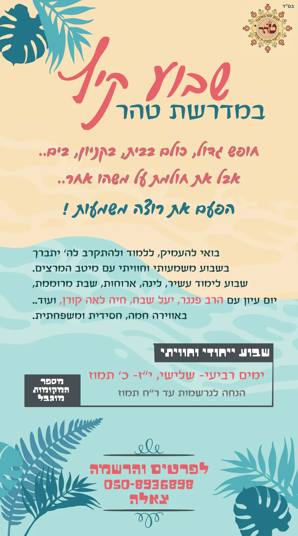 מומלץ לתאם לפני כן עם המזכירות/ אחראיות רישום. בהצלחה