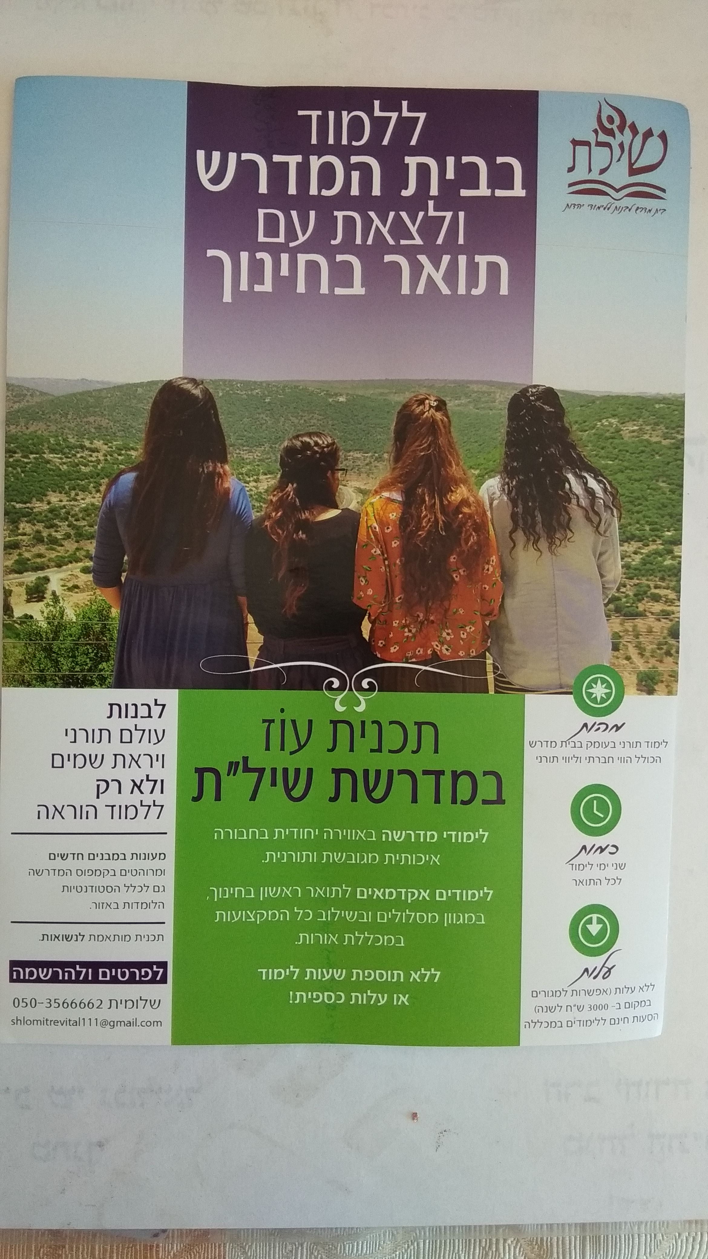 אבל עדיף- לשלוח פניה באתר המדרשות למדרשת יצהר ואני אחזור אליך