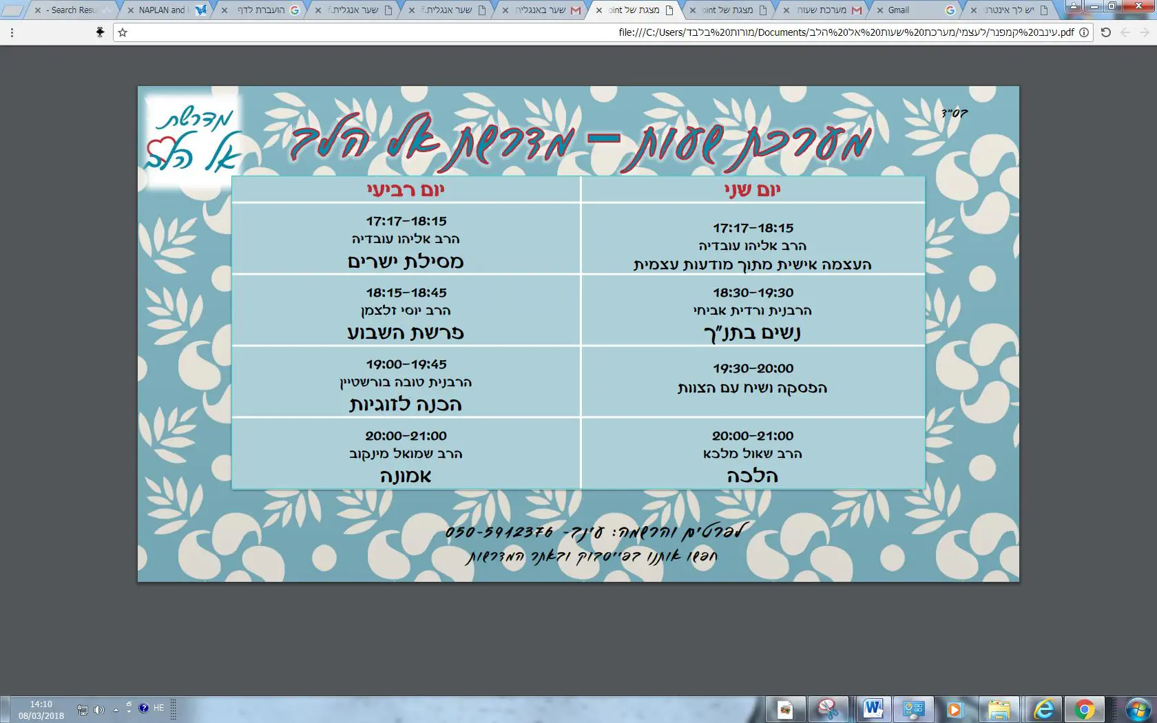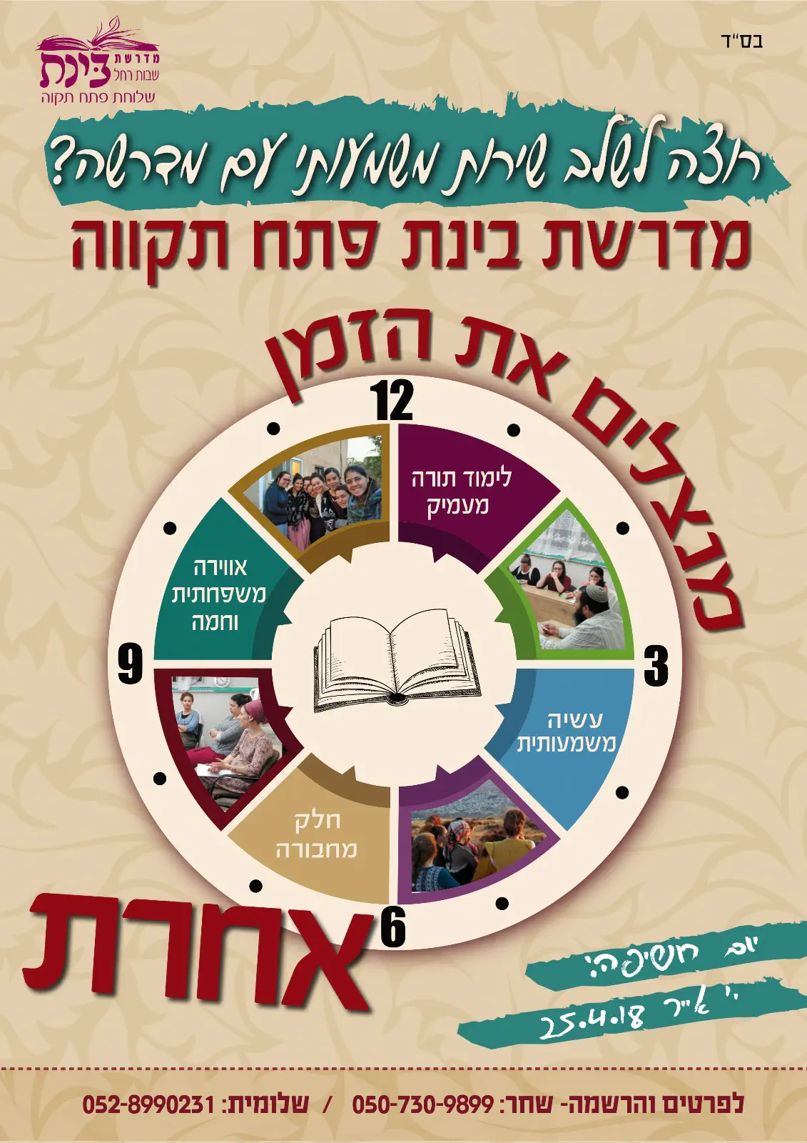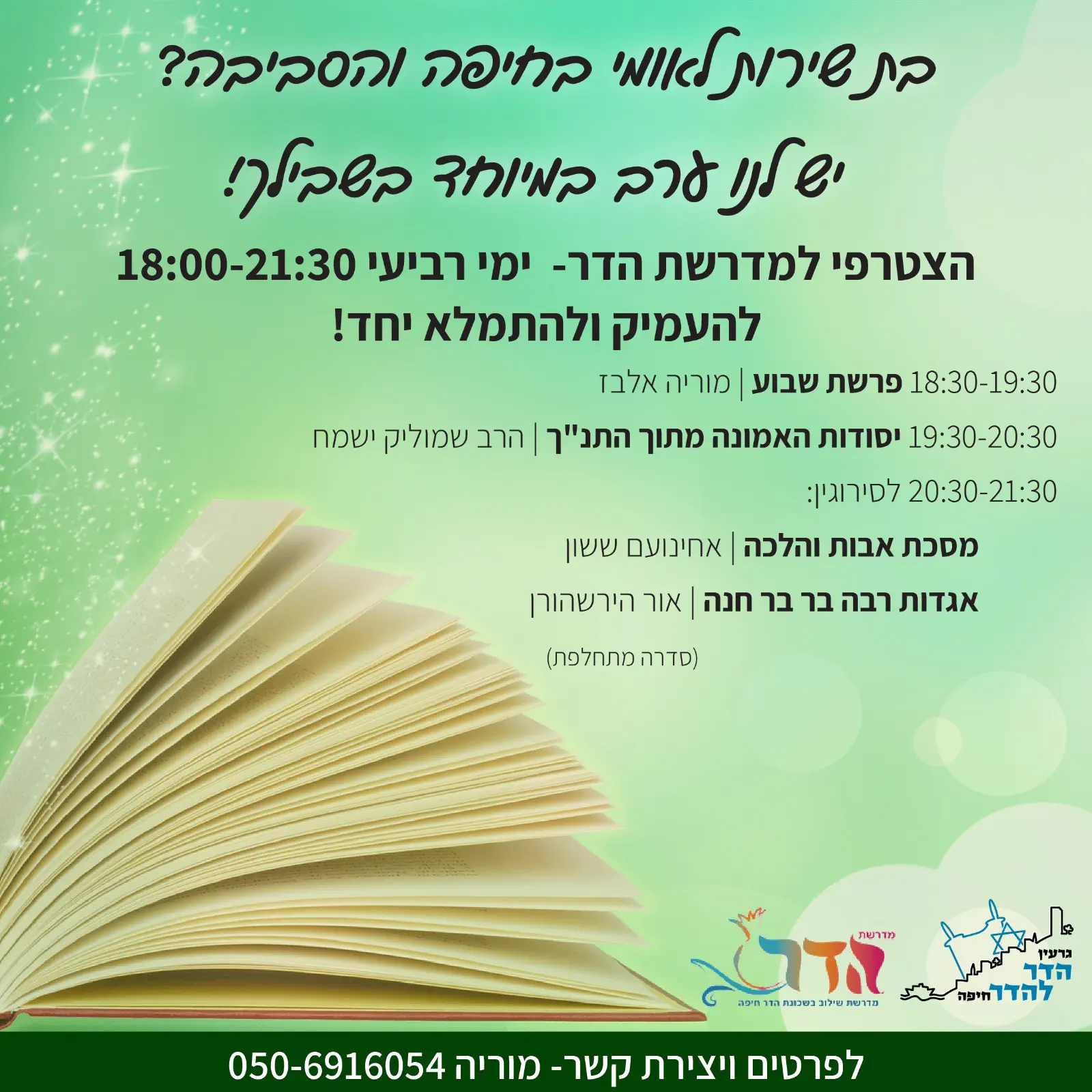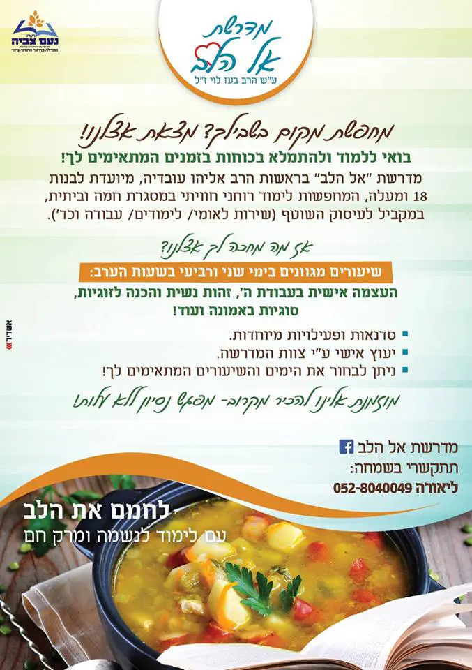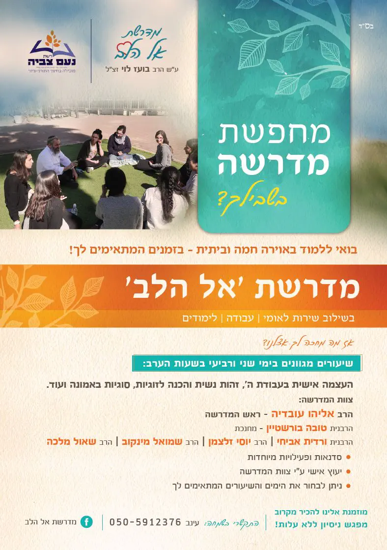 מוזמנת להתקשר למספר שכתוב בפלאיירמדרשת אל הלבאחרונה