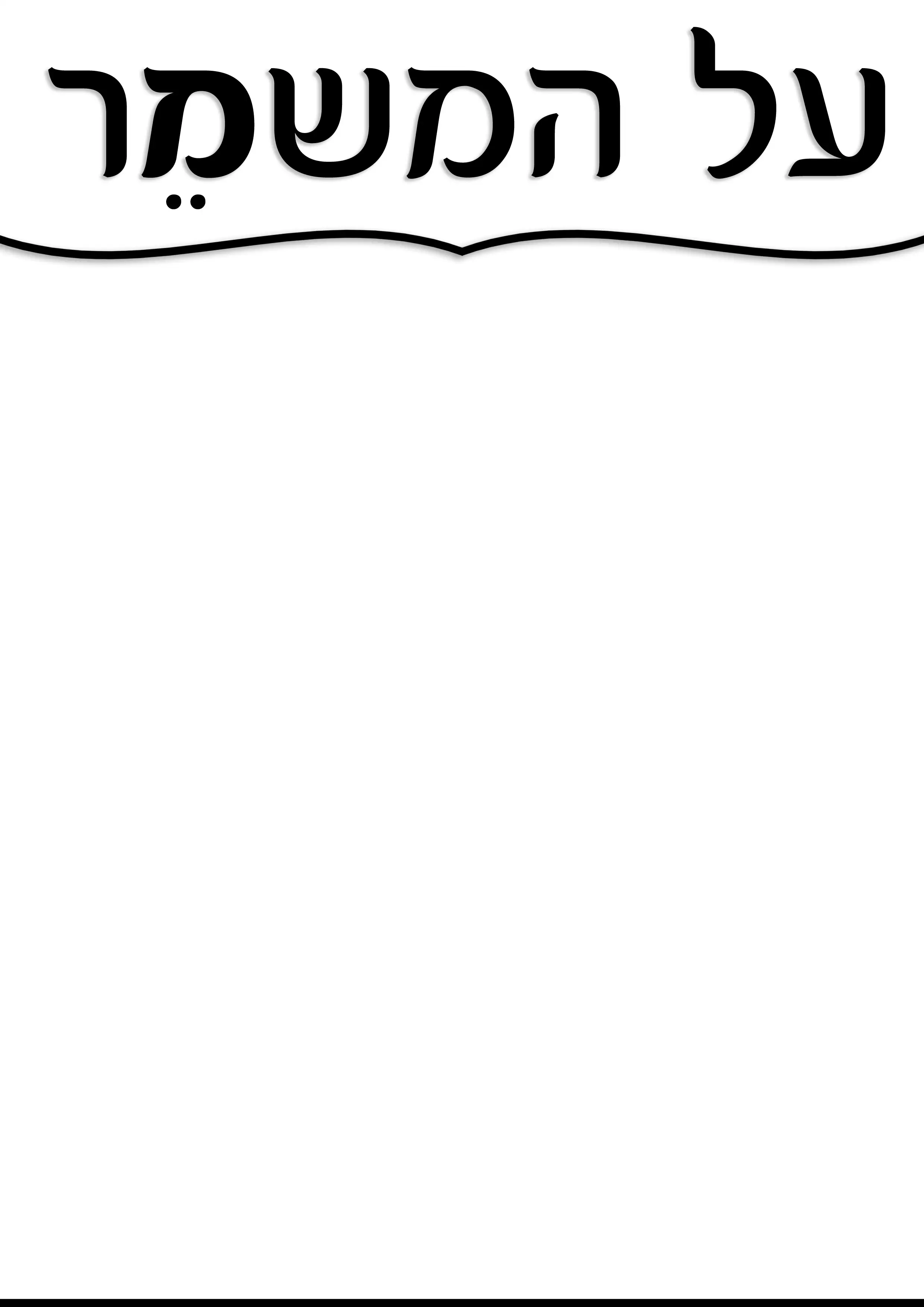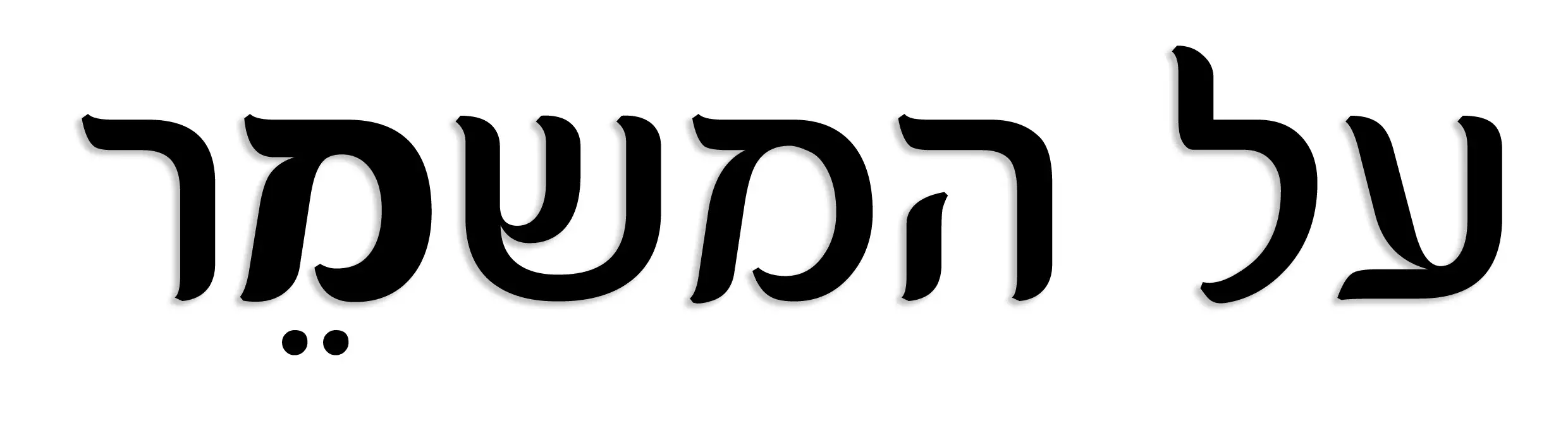 אני עורך העלון בישיבה שלי, עלון בשם "על המשמר". הבקשה שלי היא כזאת. אני צריך לוגו לעלון, העומד בדרישות הבאות: שחור לבן, ברוחב עמוד A4, כמה סנטימטרים לאורך, והאות "מ" מודגשת. בלי ניקוד, מלבד הצירה מתחת המ', גם הוא מודגש.