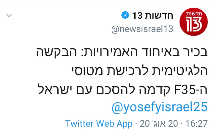 כתבת "ברור שהם לא יאשרו לאמריקאים לעשות את עסקת הF35 אבל מיאדם כל שהוא