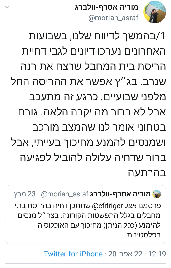 שאני אבין... שוטרים אמורים לפרוק את המתח, העצבים והמשקעים הנפשיים על שק חבטות בדמות בחור שלא שם מסיכה? איזו דוגמה אתם משמשים למחבלים? זהירות מונעת הדבקה אז אפשר לבוא במגע אגרסיבי עם אישה חרדית עם מסיכה על הפה כי הקורונה עוברת באויר לא? עזבו את הקונספירציות בצד לרגע. גם בלי קורונה... זה אנושי? תוציאו מהראש שלכם את האשליה שתל אביב היא מוזיאון ושם צריך להפגין רוחב לב ונדיבות על מנת להוות דוגמה אישית לקהילה שלא שמעה על המושגים הללו. במאה שערים, חיות האדם במדי שוטרים מרגישים בנוח להוציא את האישיות שלהם אל האור, שוטר יקר. אני מביעה בזאת את שמחתי לרגל מציאת המקום לביטוי הרגשי, האישי, והנפשי שלך אך צר לי להודיעך חיים שם בני אדם, רגילים! כן. לא חיות כמוך. לכן, תוריד את הזנב ולך חפש את עצמך במקום אחר.
