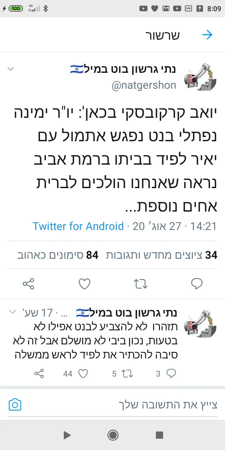 יש לי תחושה שיש עתיד וימינה דווקא נהנות מזה וקצת משתפים פעולה (הציוץ מחדש שעשה לפיד לבנט השבוי, פגישות וכו') כי בסופו של דבר הם מלחיצים כך את הליכוד. אבל מהצד שני זה עדיין נשאר על אש נמוכה, גם בשביל לא להבריח את הבייס אחד של השני (ואפילו מחזקים אחד את השני בדיוק כפי שעשו ליברמן והחרדים במשך שנים) וגם כי שניהם יודעים שהחיבור בניהם לא יקרה בשנית.