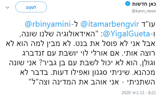 יש לו רק אגו יותר קטן משל בן גביר. בזה בן גביר אכן קיצוני יותר ממנו.
