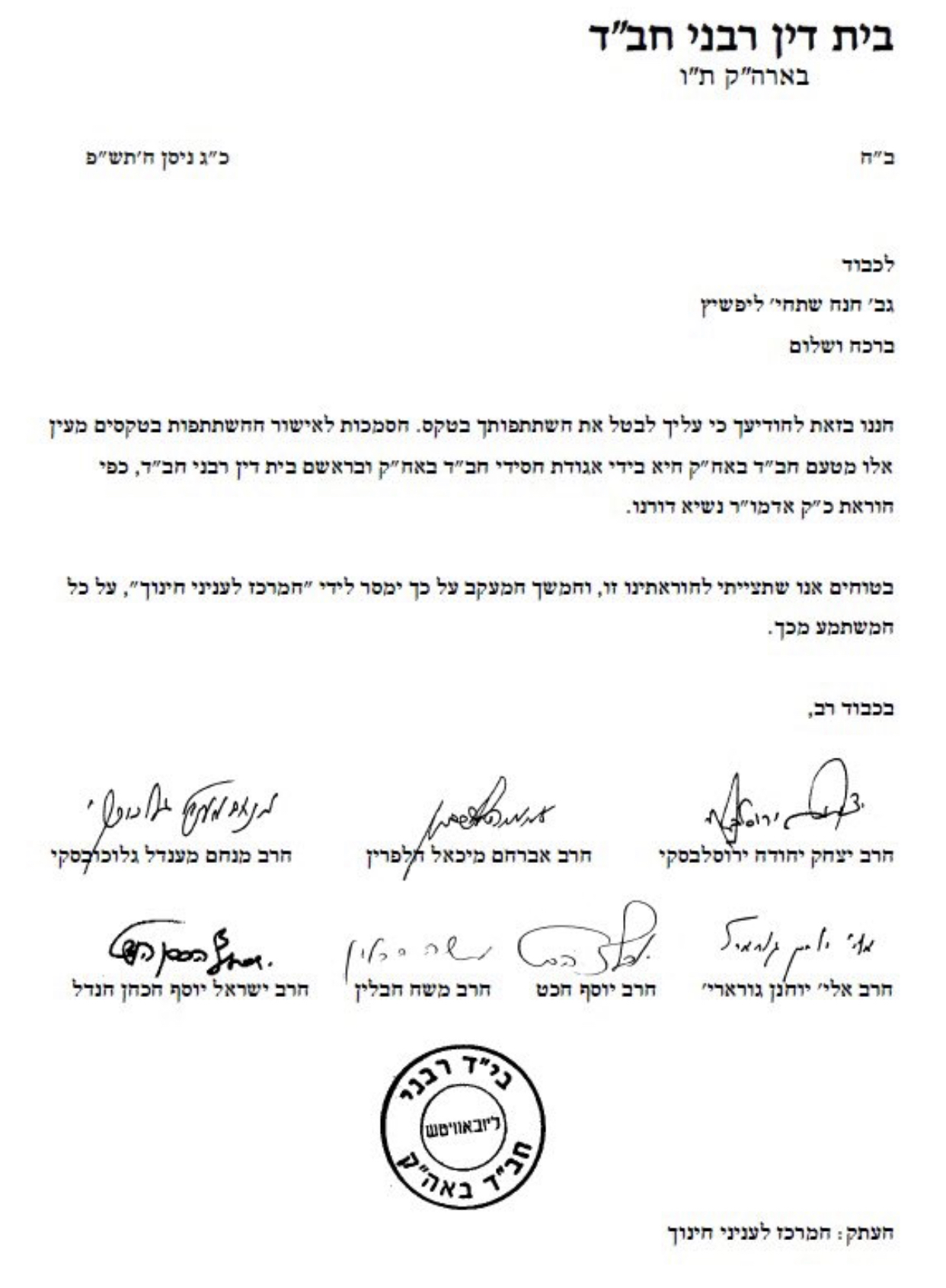 לגבי דברי מנחם רהטהבעטליר החמישי