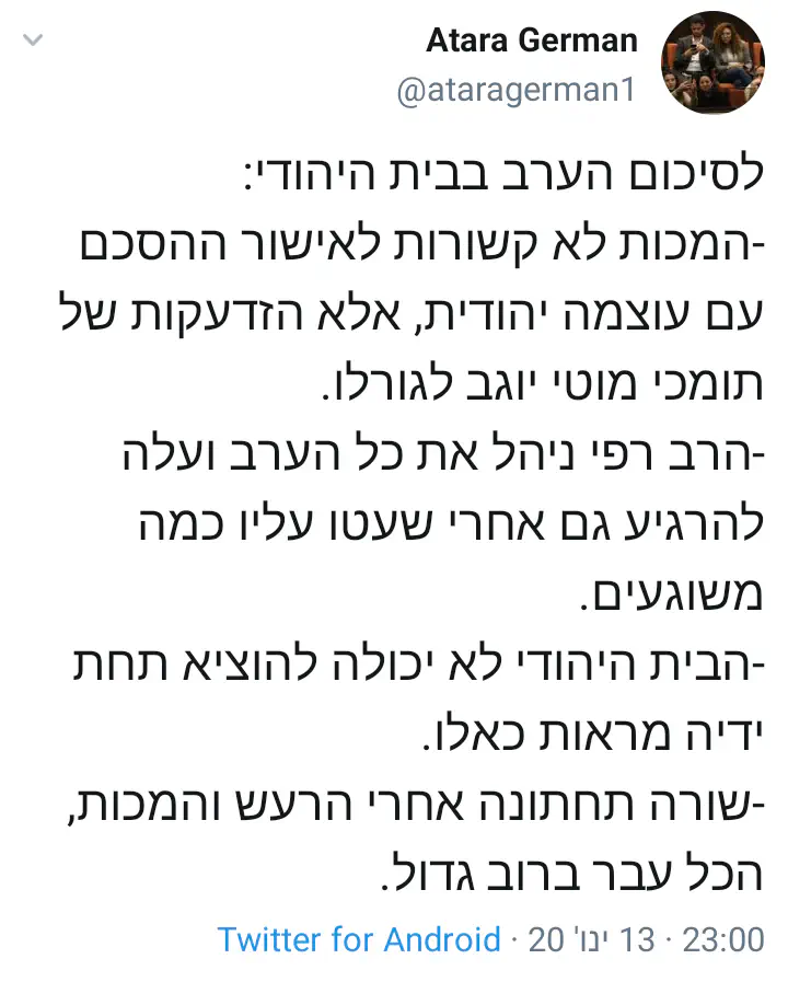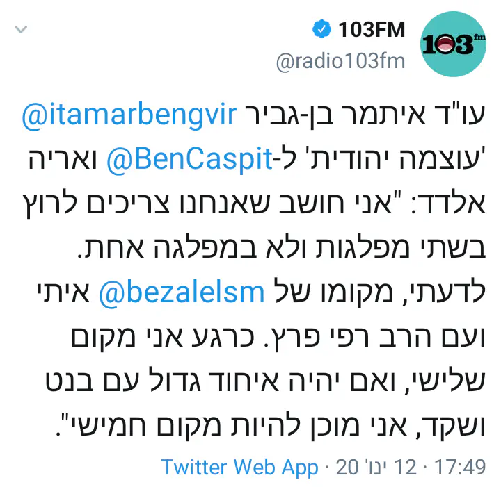 ובכל מקרה, אני לא רואה מצב שבו קמה ממשלת שמאל עם המשופם לשעבר ואורלי לוי. הם צריכים להגיע ל-61 בלי המפלגות הערביות וזה לא תרחיש ריאלי.