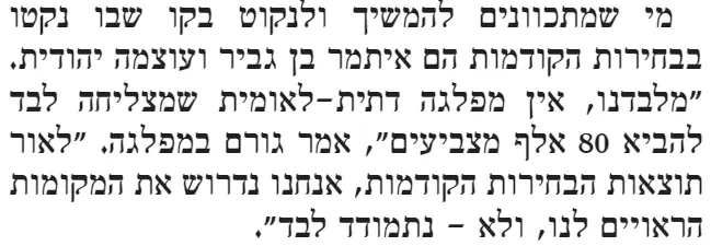 אל תקשה לי מהבחירות לפני חצי שנה, כי אז היה את פיגלין שלקח לימין החדש קולות.